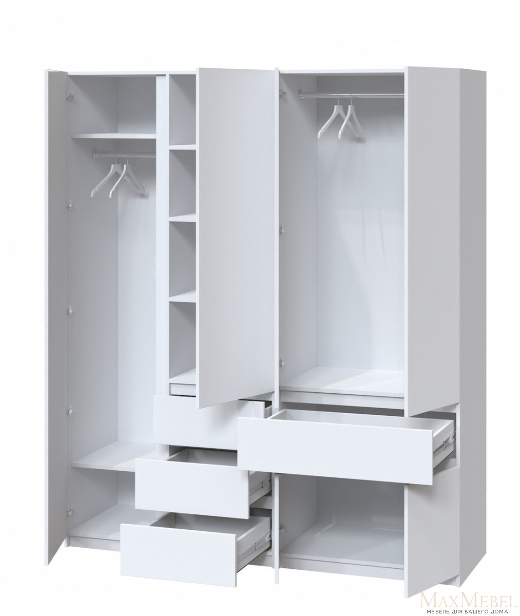 Количество створок (дверей), шт: 6 Состояние: Новое Фасады: ламинированная ДСП Вес, кг: 162 Высота, мм: 2000 Глубина, мм: 520 Количество выдвижных ящиков, шт.: 4 Корпус (каркас): ламинированная ДСП Материал корпуса: Ламинированная ДСП Металические профили: Телескопические направляющие Назначение: Для дома Сфера использования: Для дома Тип мебели: шкаф Цвет: Белый Ширина, мм: 1800 Закажите этот стильный шкаф для идеального хранения и создания уюта в вашем доме.Большой современный просторный шкаф из ламинированного ДСП, идеально подойдет к вашей спальни и впишется в любой интерьер. Современный дизайн без ручек и универсальные габариты позволяют использовать его в самых разных помещениях. Надежные конструкции обеспечивают удобство поставки любых вещей, качественные материалы. Характеристики: Особенности: