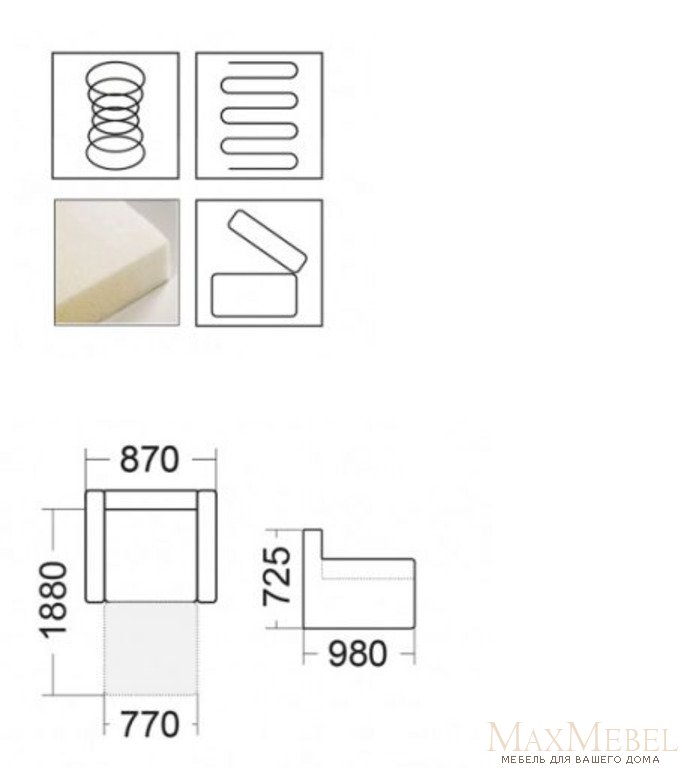 спальное место: 770х1880 мм