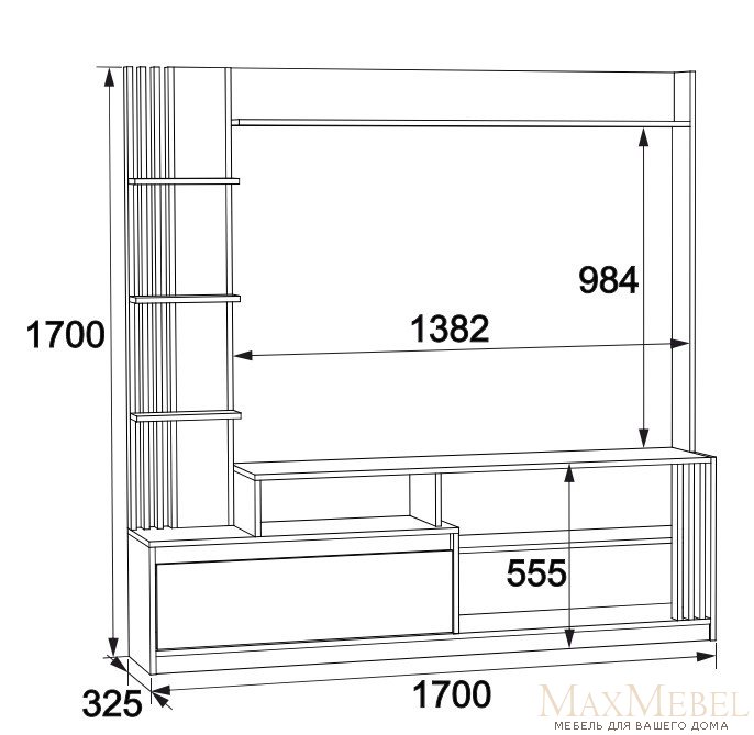 • Размеры: Ширина 170 см, глубина 32,5 см, высота 170 см