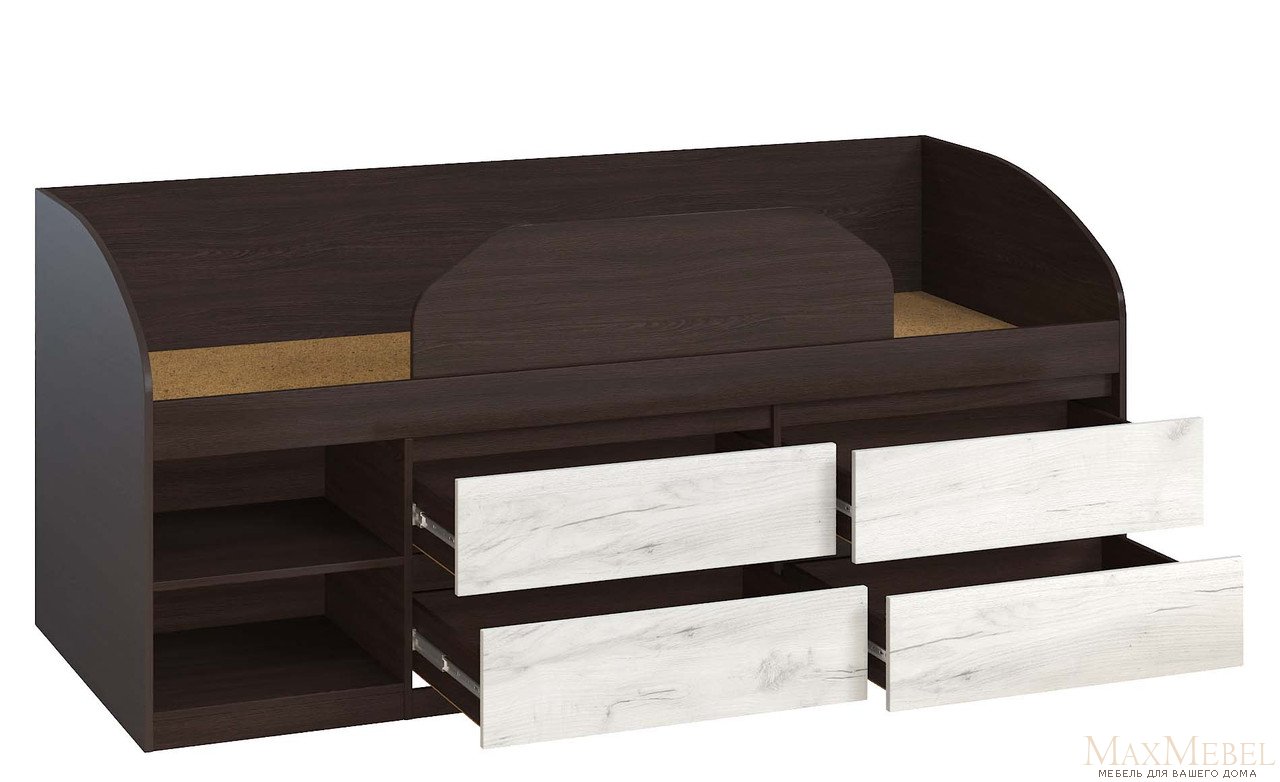 Главная › Модульная мебель › Мастер-Форм › Брайт › Кровать "Брайт" с детским ограничителем 835x2032x840 . Венге магия/дуб крафт белый (правостороняя) |