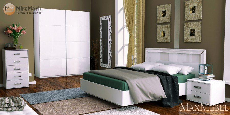 Составные элементы Белла Спальня 1:Кровать 1,6х2,0(каркас) | Глянец белый