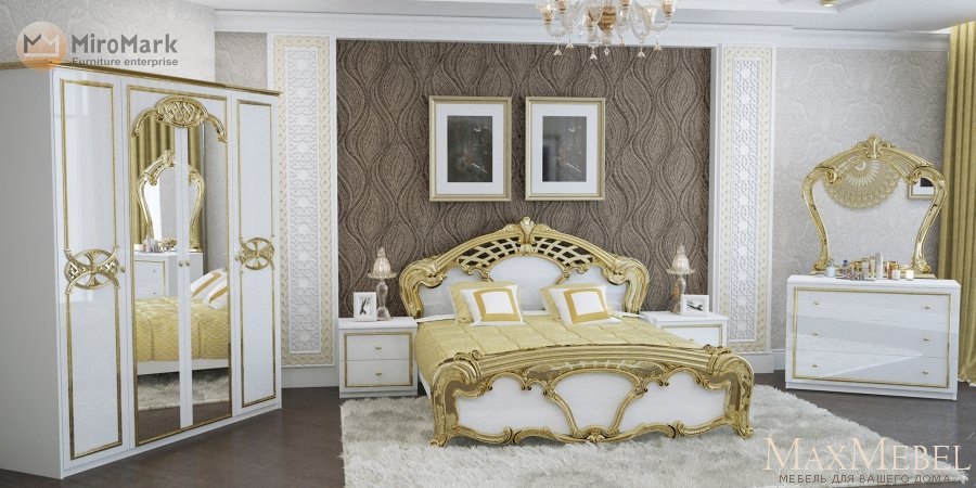 Составные элементы Ева Спальня 1:Кровать 1,6х2,0(каркас) | Глянец белый - Золото
