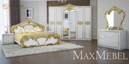 Составные элементы Ева Спальня 2:Кровать 1,8х2,0(каркас) | Глянец белый - Золото