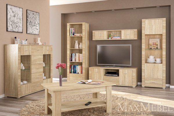 Гресс Гостиная 1 - удобная практичная коллекция в натуральных природных тонах «дуб Самоа». Утолщенные боковые стенки, отсутствие витиеватого рельефа на фасадах, миниатюрные ручки. Оптимальный набор для обустройства интерьера гостиной комнаты, достойное украшение вашего дома.материал корпуса : ДСПматериал фасада : ДСП/вставки МДФ
