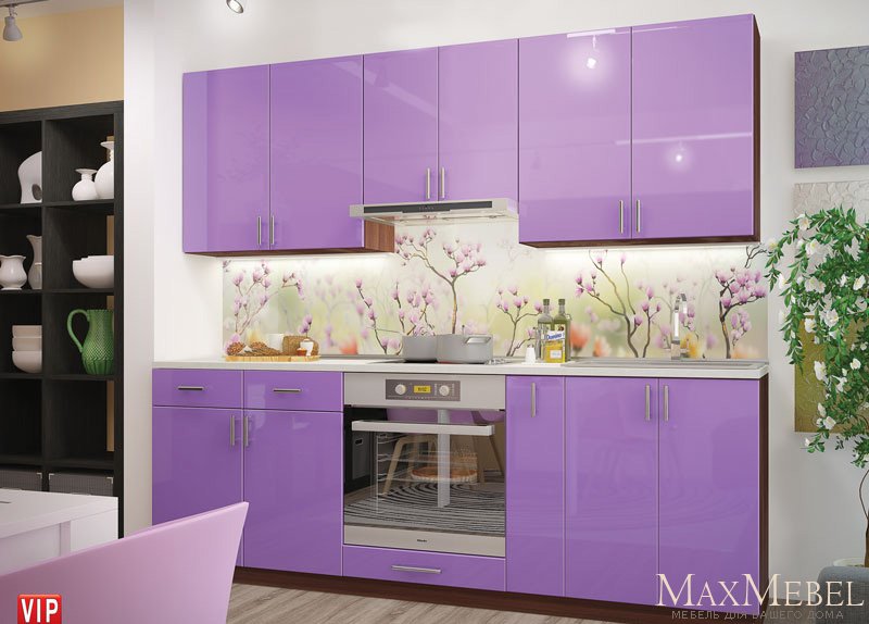 материал корпуса: ламинированный ДСПматериал фасада: крашеный МДФ(глянец)цвет фасада: сиреневыйцвет корпуса: орех