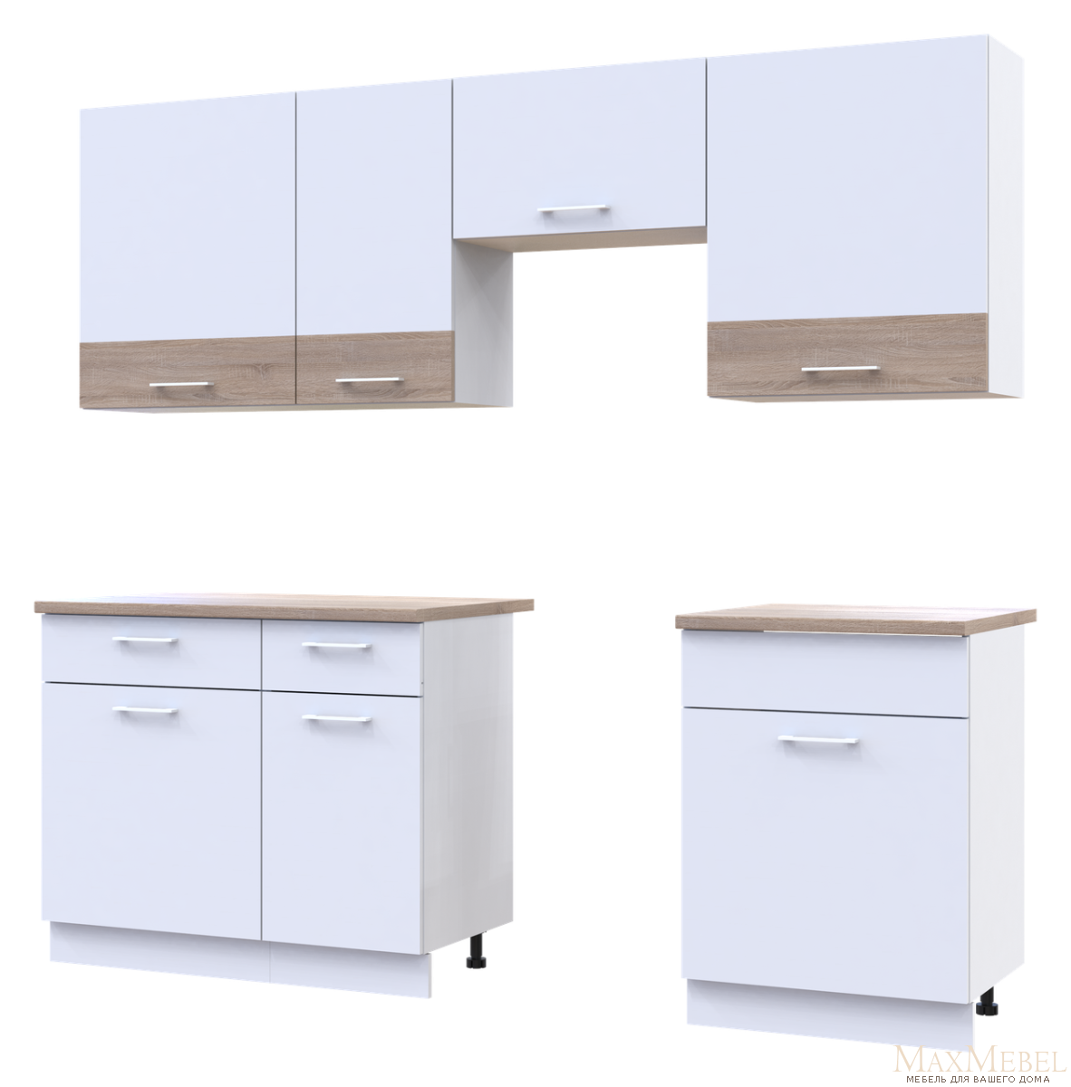 Кухня Лея Белый / Белый вставка Дуб Cонома 220х60х250