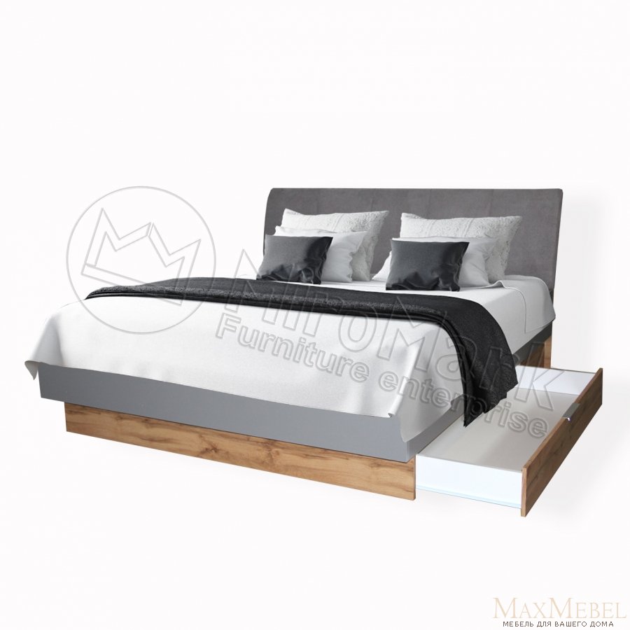 Линц Кровать 1,8х2,0 с ящиками + вклад под матрас | Серый шифер - Дуб Вотан
