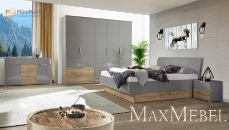 Составные элементы Линц Спальня:Кровать 1,8х2,0 с ящиками + вклад под матрас | Серый шифер - Дуб Вотан