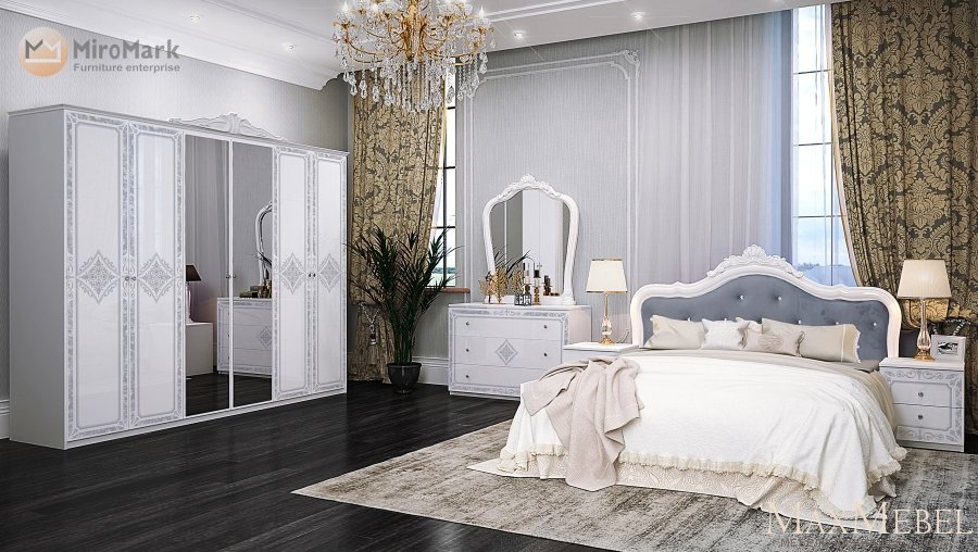 Составные элементы Луиза Спальня 1:Кровать 1,6х2,0(каркас) | Глянец белый