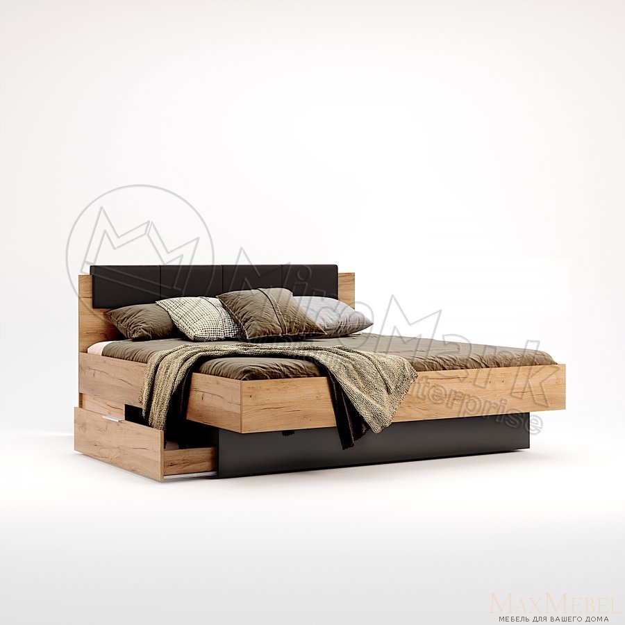 Луна Кровать 1,8х2,0 с ящиками + вклад | Дуб крафт - Мат Лава