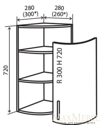 Навесной Шкаф №15R+ (280x720) угл. окончание гнут. Flat