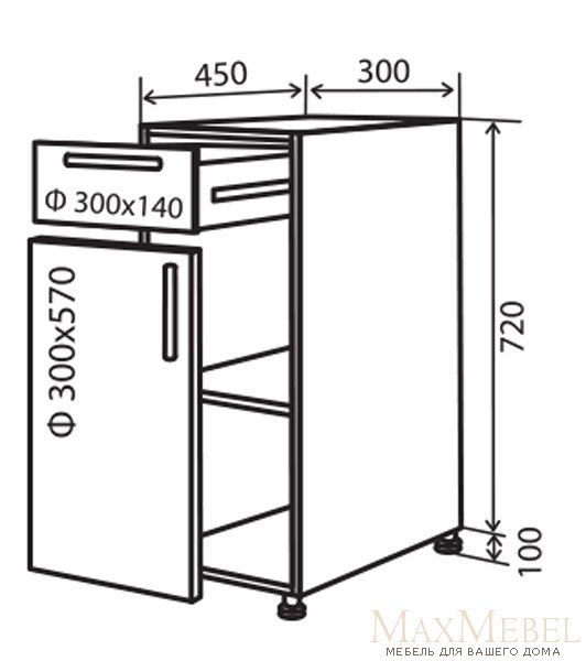 Нижняя тумба №22 (300x820 шухляды) MoDa