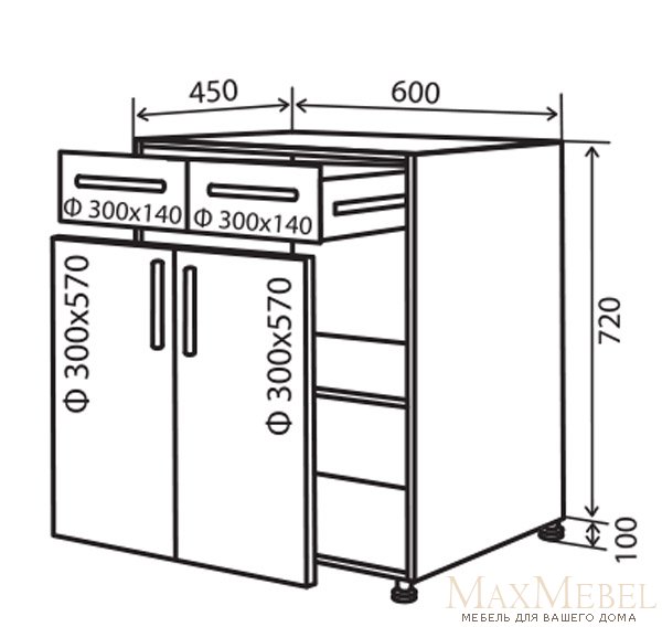 Нижняя тумба №26 (600x820 двери+шухляды) Грация