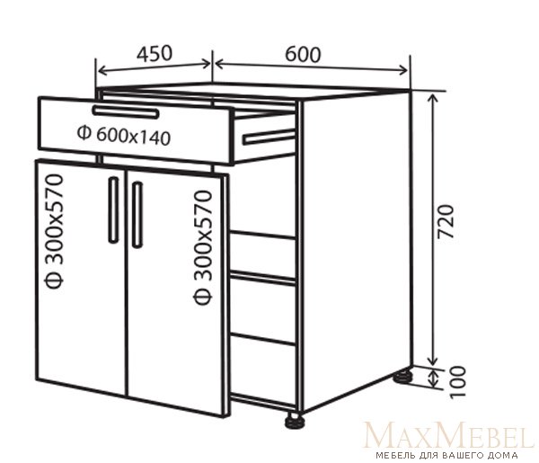 Нижняя тумба №30 (600x820 двери+шухляда) MaXima