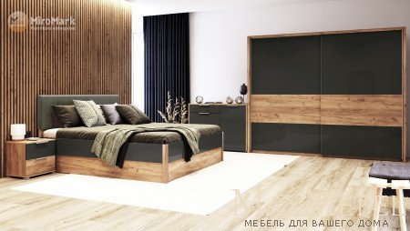 Составные элементы Рамона Спальня 3:Кровать 1,6х2,0(каркас) мягкая спинка | Дуб Крафт - Мат Лава