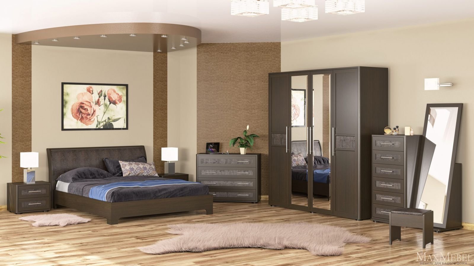 Токио Спальня 1 - обратите внимание на этот компромиссный вариант, оптимальное сочетание количества элементов и полезного объема, не заграможденного обилием мебели. Название коллекции относит нас к традициям Востока, что угадывается в выбранной темной цветовой гамме и сдержанности декора модульных элементов.материал : ДСП