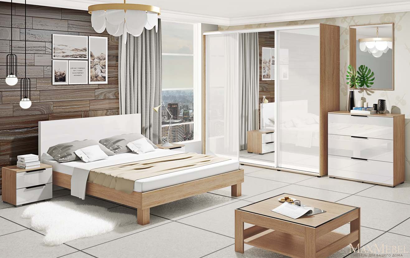 Составные элементы Тренд Спальня 1:Шкаф-купе 2ДСП(крашеный глянец)-зеркало 240/60