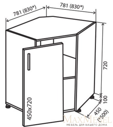 Тумба под мойку №34 (780x820) угол Кредо