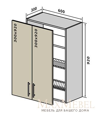 ГлавнаяКухниКухни модульные Кухня Соло (VIP-master) МДФ пленкаНавесной Шкаф №47 сушка (600x920) Соло