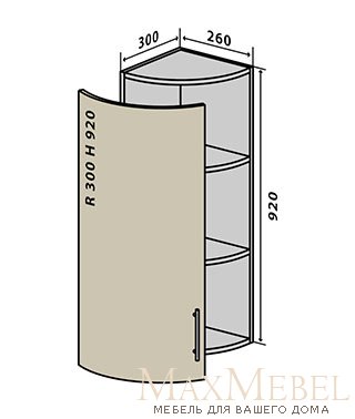 ГлавнаяКухниКухни модульные Кухня Bravo (Vip - Master) МДФ крашеныйНавесной Шкаф №56R угл. окончание гнут. (280x920) Bravo