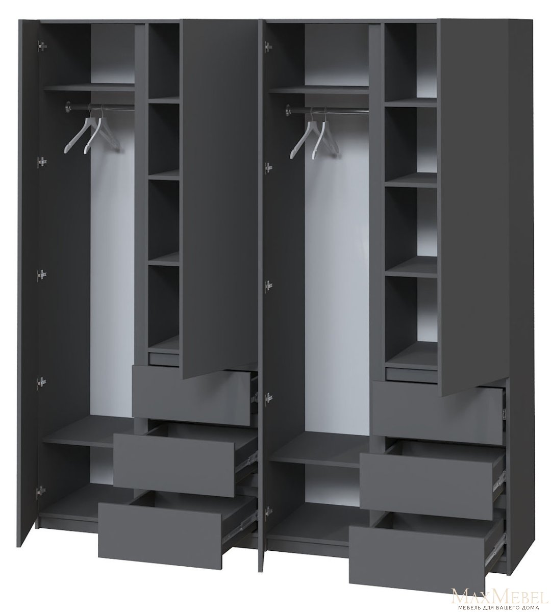 Количество створок (дверей), шт: 4 Состояние: Новое Фасады: ламинированная ДСП Штанга для одежды, шт: 2 Вес, кг: 196 Высота, мм: 2000 Глубина, мм: 520 Количество выдвижных ящиков, шт.: 6 Корпус (каркас): ламинированная ДСП Материал корпуса: Ламинированная ДСП Металические профили: Телескопические направляющие Назначение: Для дома Сфера использования: Для дома Тип мебели: шкаф Цвет: Антрацит Ширина, мм: 2000 Закажите этот стильный шкаф для идеального хранения и создания уюта в вашем доме.Большой современный просторный шкаф из ламинированного ДСП, идеально подойдет к вашей спальни и впишется в любой интерьер. Современный дизайн без ручек, качественные материалы и универсальные габариты позволяют использовать его в самых разных помещениях. Надежные конструкции обеспечивают удобство хранения любых вещей. Характеристики: Особенности: