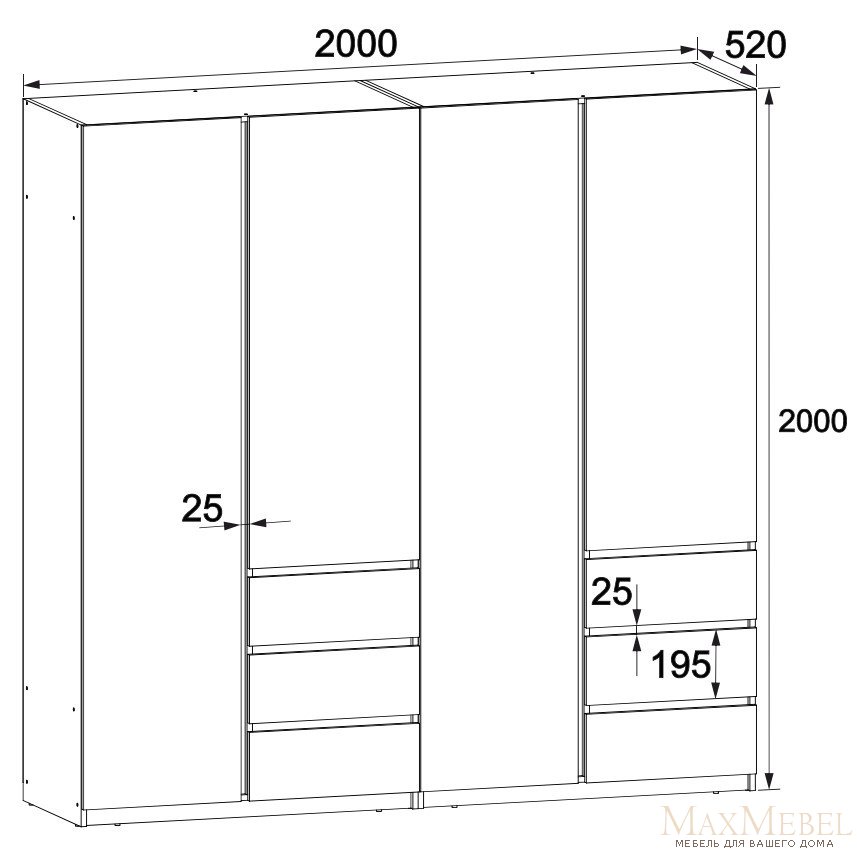 • Размеры: Ширина 200 см, глубина 52 см, высота 200 см