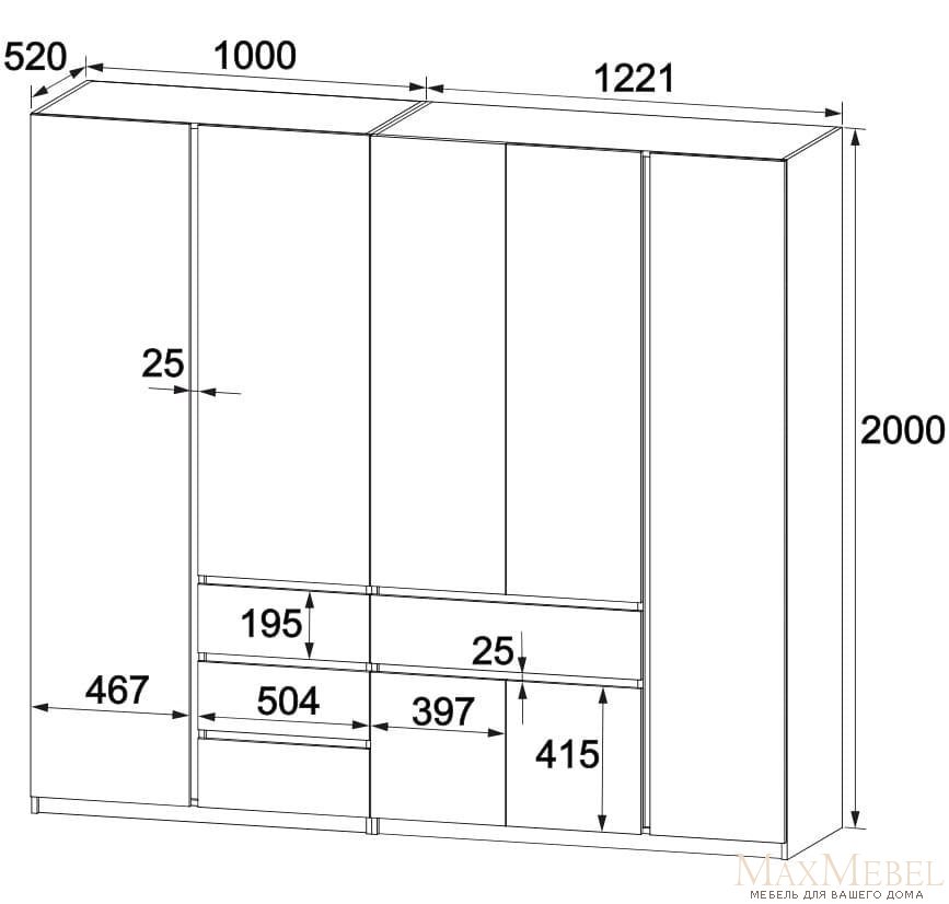 • Размеры: Ширина 222.1 см, глубина 52 см, высота 200 см