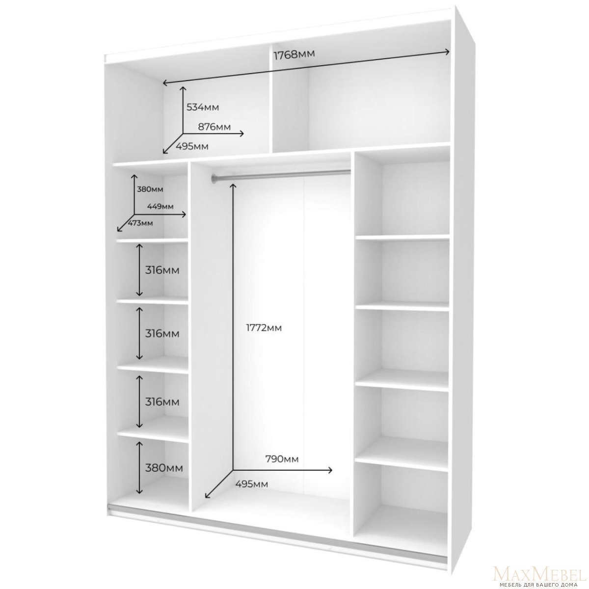 Количество раздвижных дверей: 2 Материал раздвижной системы: сталь Декор фасада: ЛДСП Цвет (оттенок) мебели: Белый Гарантийный срок, мес: 18 Состояние: Новое Корпус: ламинированная ДСП Двери: ДСП ламинированная Задняя стенка: ДВП Декоративные элементы: ламинированная ДСП Длина шкафа-купе, мм: 1800 Глубина шкафа-купе, мм: 600 Высота шкафа-купе, мм: 2400 Полки для белья (бельевой отдел): Да Штанга для одежды, шт: 1 "G-Caiser" - новое поколение шкафов с раздвижными дверями, которое набирает популярность на украинском рынке. Комплектация шкафа купе G-Caiser Во всех шкафах "G-Caiser" используется раздвижная система польского производства. Особенность каждого из цветов корпуса заключается в цвете раздвижной системы. Комплектация корпуса в цвете графит и тахо имеет черный цвет раздвижной системы тахо имеет черный цвет раздвижной системы, а к корпусу в белом цвете будет раздвижная система в цвете алюминий. Фасады в шкафах 160 и 180 см разделяются 3 равные части. Фасады в шкафах 200 см разделятся на 5 частей. Фасады в шкафах 220 см разделяются на 4 и 5 частей в зависимости от дизайна. Для модельного ряда "G-Caiser" доступны такие дополнительные комплектующие по желанию клиента: Ящики: ящики в шкафах обеспечивают дополнительное пространство для хранения и позволяют организовать вещи более структурировано. Дверные доводчики: это основные устройства, установленные на дверях для контроля и автоматического закрывания. Шкафы купе изготавливаются в четырех размерах: 160х60х240 см, 180х60х240, 200х60х240, 220х60х240. Гарантия: 18 месяцев. Корпус и фасад изделия изготовлен из ламинированного ДСП толщиной 16 мм. Кромка внешних, внутренних деталей, полок - 0.5 мм. Кромка плит ДСП на фасаде - 2 мм. Шкафы спроектированы таким образом, чтобы обеспечить прочную, безопасную и устойчивую конструкцию. Фурнитура проходит проверку на прочность и долговечность Страна происхождения фурнитуры - Польша. Верхняя направляющая и система навесных фасадов - сталь. Нижний профиль - пластик. Ручка профиль - сталь. Основа зеркала - плита ДСП 16 мм. Все изделия проходят проверку на прочность и долговечность. Сохраняйте упаковку до полной сборки изделия, поскольку ее наличие является обязательным условием для принятия рекламаций по товару. Условия доставки по Киеву