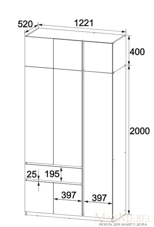 • Размеры: Ширина 122.1 см, глубина 52 см, высота 240 см