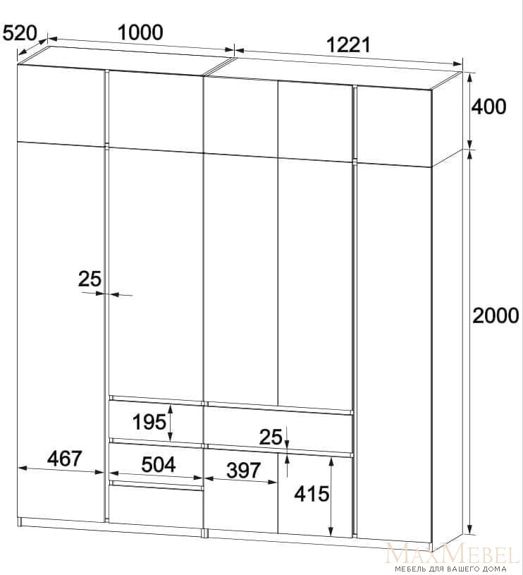 • Размеры: Ширина 222.1 см, глубина 52 см, высота 240 см