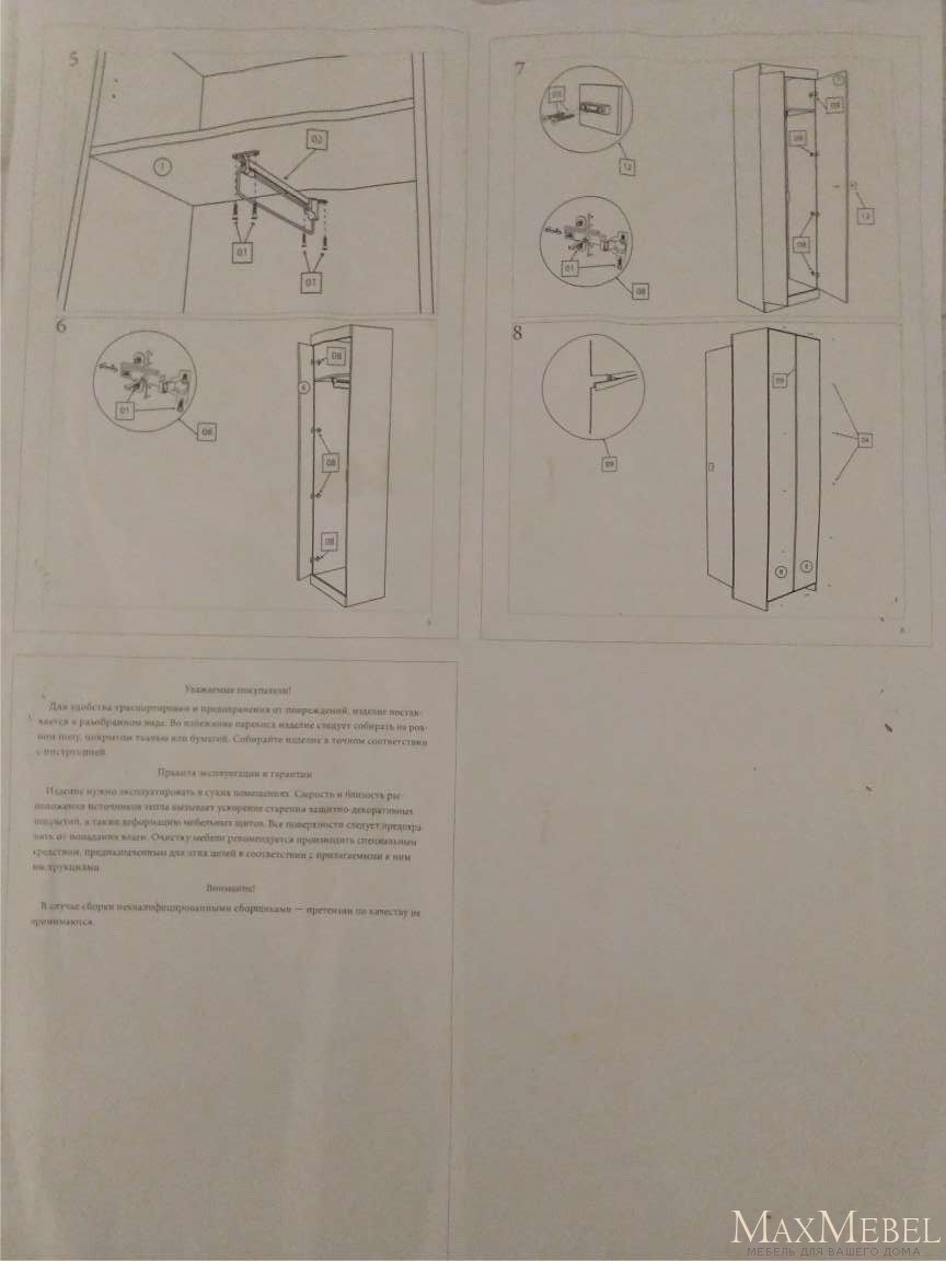 Фото прикладаю і інсткцію теж на всякий випадок. Всіх елементів кріплення вистачило, дрібниці ще залишились. Єдине немає кріплення вішалки до стіни. Шафу рекомендую ще закріпити зверху до стіни, на всякий випадок. Покупкою задоволений. Ще раз відмічаю, що інструкція покрокова і практично на всіх деталях є мітки, які роблять збірку практично задоволенням. На вішалці не було міток, я розміри установки вішаків добавив на фото, як зробив я. Фото нижче.