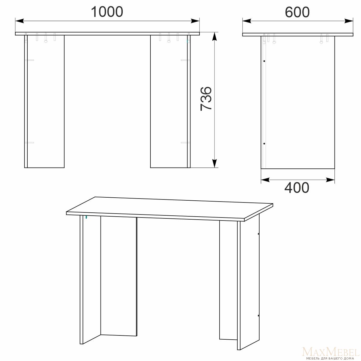 ширина: 1000 мм высота: 736 мм глубина: 600 мм материал : ДСП