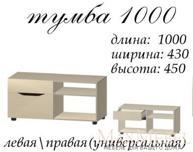 Главная › Модульная мебель › Мастер-Форм › Аякс › Тумба "Аякс" 1000х430х450 h . Дуб крафт белый / Венге магия |