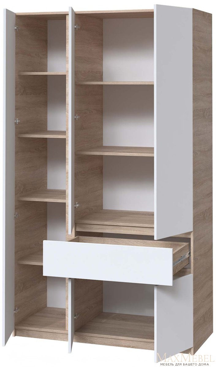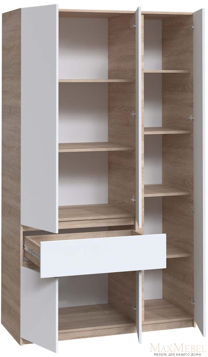 Придбайте цю стильну та сучасну шафу - ідеальне поєднання стилю та функціональності! Ця містка шафа з полицями з ламінованого ДСП – відмінне рішення для зберігання речей і документів, він ідеально підійде у ваш кабінет або офіс і впишеться в будь-який інтер'єр. Модель оснащена просторими відділеннями...