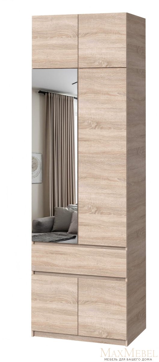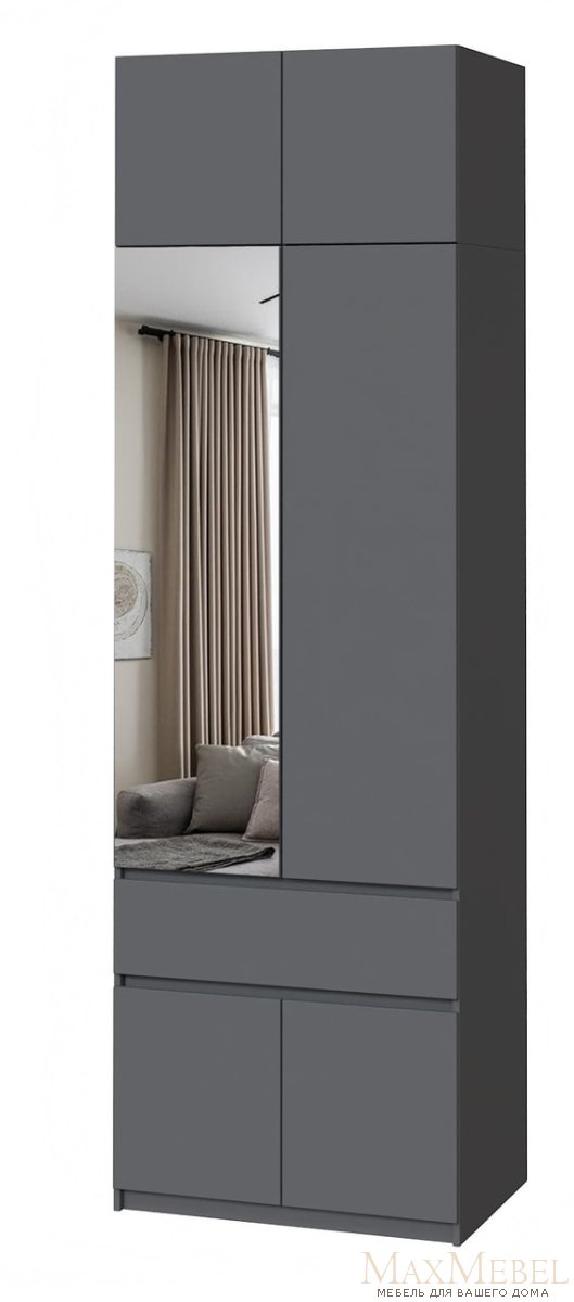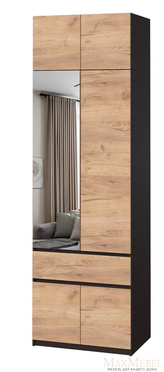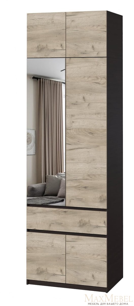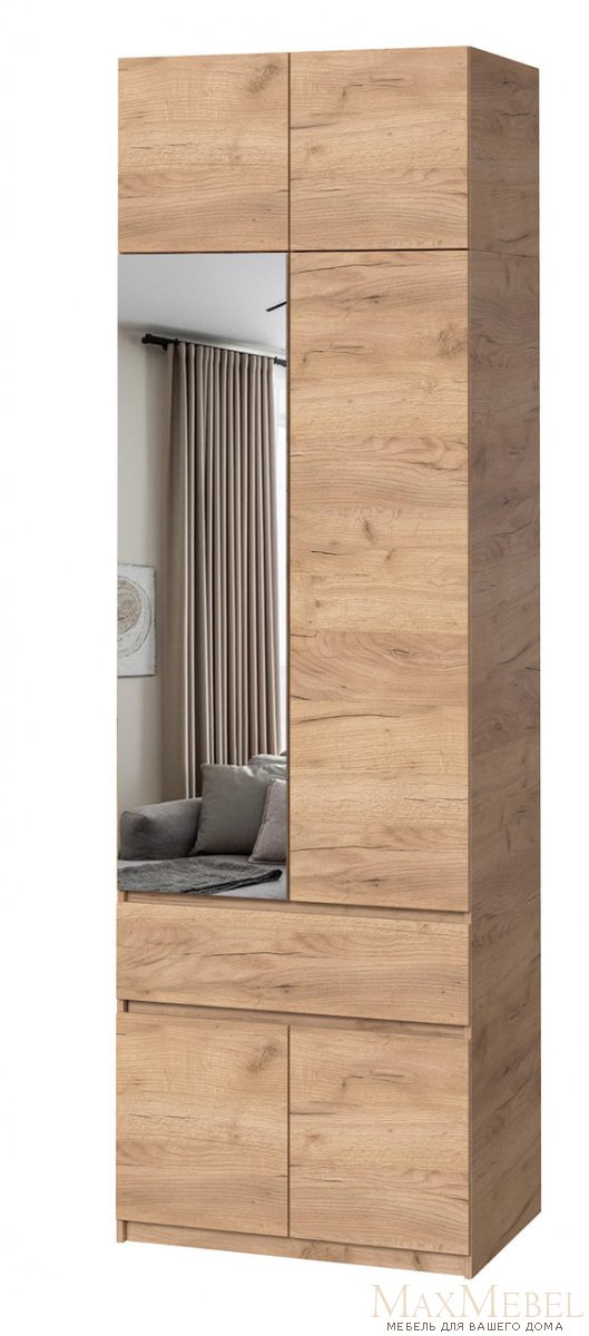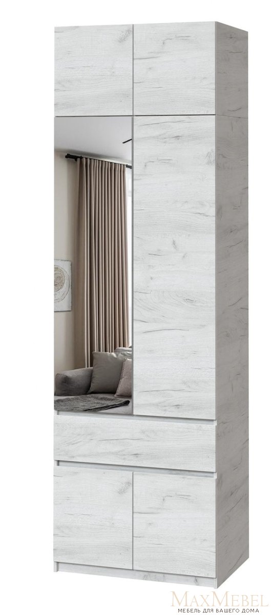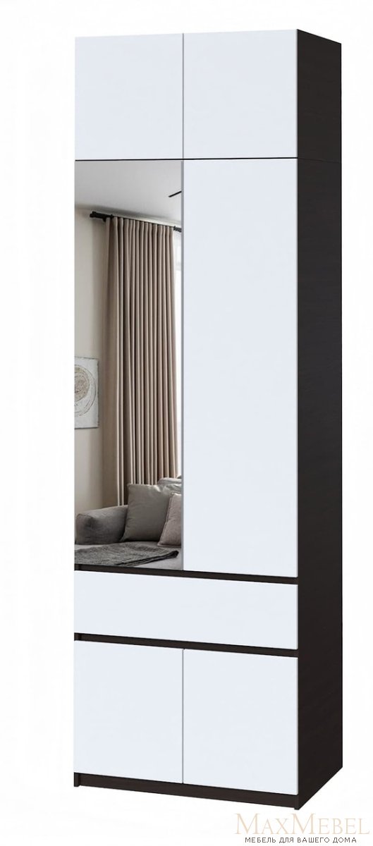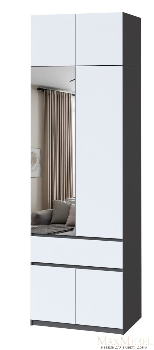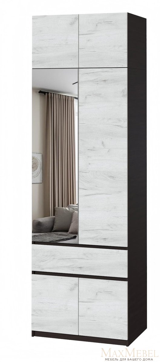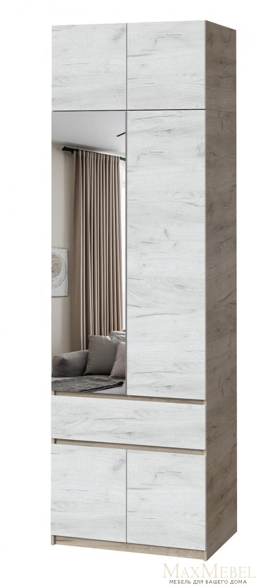 Придбайте цю стильну і сучасну шафу - ідеальне поєднання стилю та функціональності! Ця містка шафа з антресоллю і дзеркалом на повний зріст з ламінованого ДСП – відмінне рішення для зберігання речей та одягу, він ідеально підійде до вашої спальні. і впишеться в будь-який інтер'єр. Модель оснащена...