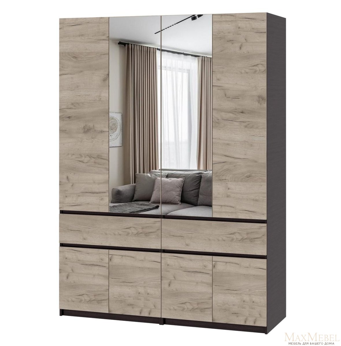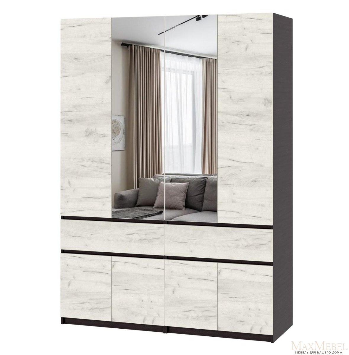 Придбайте цю стильну та сучасну шафу - ідеальне поєднання стилю та функціональності! Ця містка шафа з дзеркалом з ламінованого ДСП – відмінне рішення для зберігання речей та одягу, він ідеально підійде до вашої спальні. і впишеться в будь-який інтер'єр. Модель оснащена просторими відділеннями...
