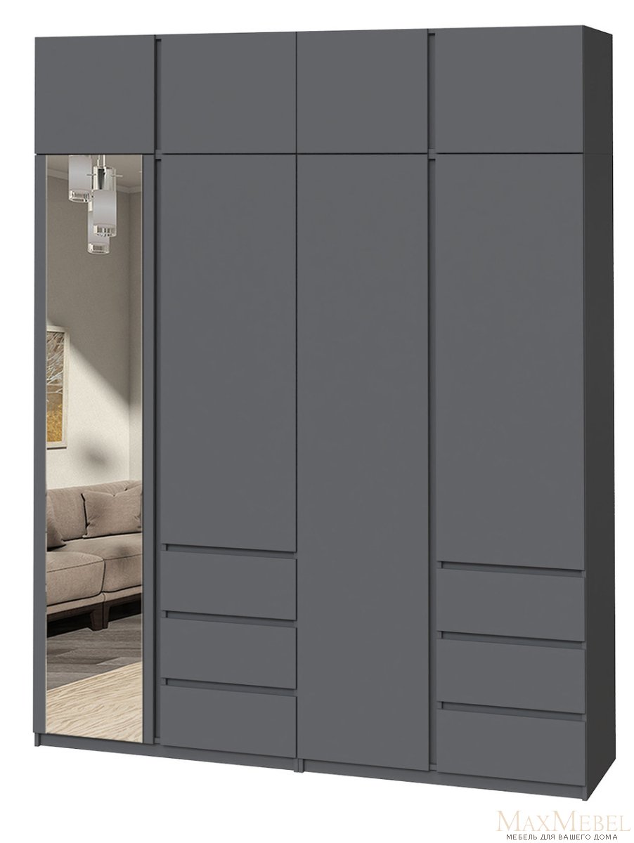 Придбайте цю стильну та сучасну шафу - ідеальне поєднання стилю та функціональності! Сучасна шафа з дзеркалом та антресоллю з ламінованого ДСП - стане стандартним рішенням для зберігання одягу та речей. Строгий дизайн без ручок надає меблям мінімалістичний вигляд, а компактні розміри дозволяють вписати...