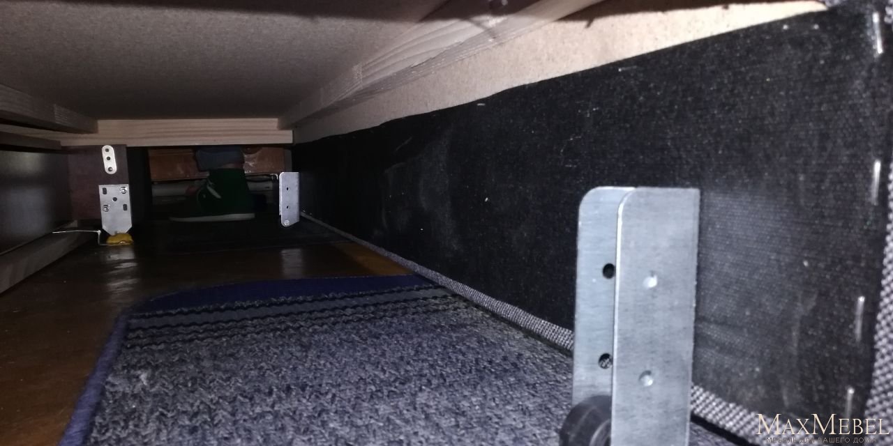 На второй месяц у дивана начала плыть передняя торцевая планка (видимо просто прикручено двумя саморезами), плюс скрипеть начал дико - явно проектировщик пьет хороший денатурат, при том что спят и сидят на нем две девушки по 50-60 кг. Плюс начала скукоживаться обивка в месте сидения, и две металлических планки для заезда колесиков уже проскребли в паркете по 3 мм глубиной две борозды - пришлось подкладывать под торец металлической части мягкие подушки. Унылый в общем диван.