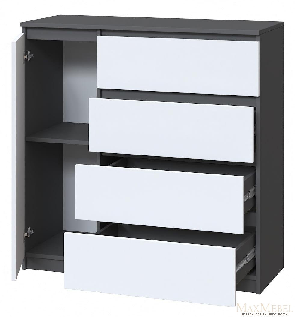 | Головна › Модульні меблі › Мастер-Форм › Брайт › Комод "Брайт" 1000х376х950 h . Антрацит/фасад БІЛИЙ Телеск. спрям. (лівосторонній) |
