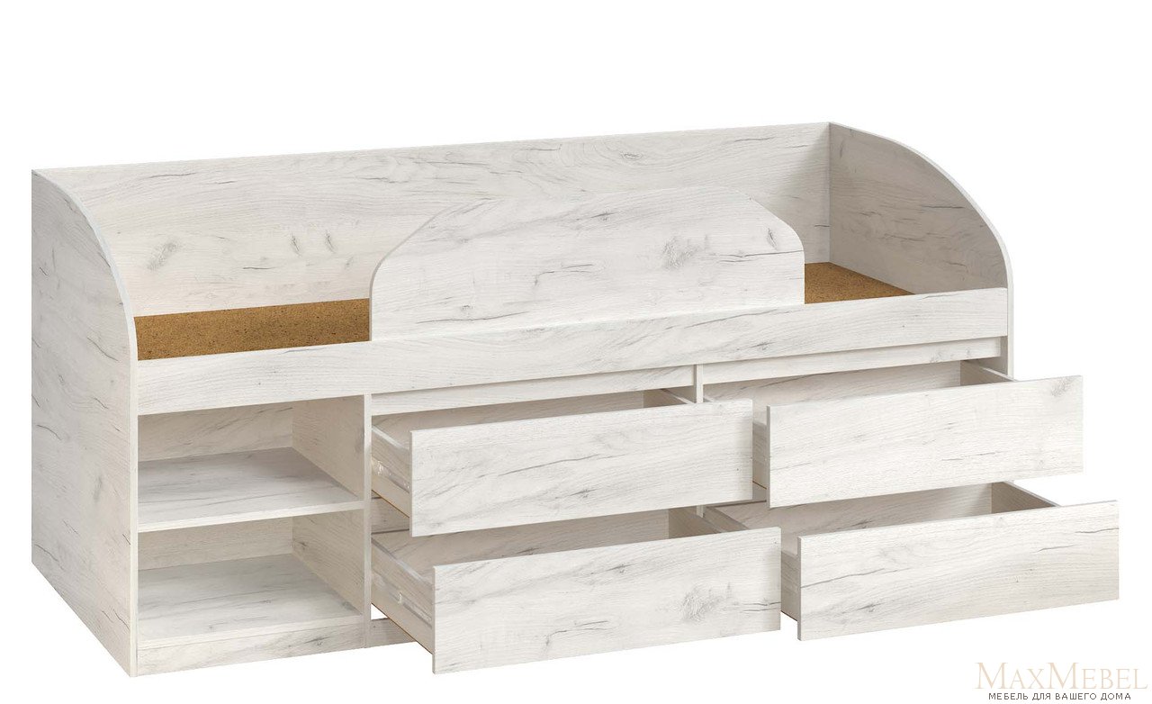| Головна › Модульні меблі › Мастер-Форм › Брайт › Ліжко "Брайт" з дитячим обмежувачем та ящиками 835x2032x840 . Дуб крафт білий (правостороння) |