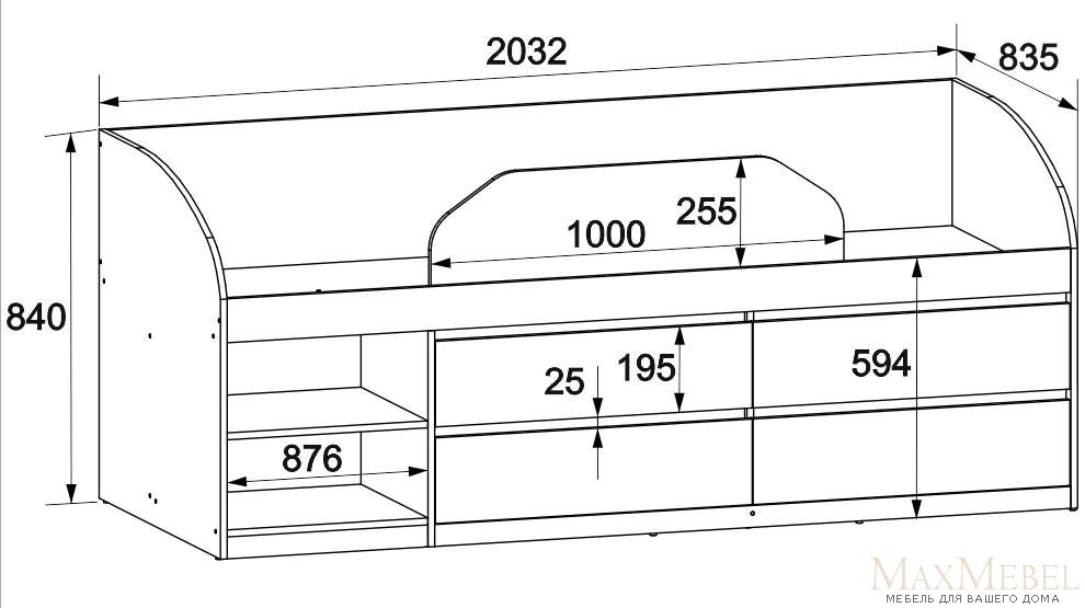 | Головна › Модульні меблі › Мастер-Форм › Брайт › Ліжко "Брайт" з дитячим обмежувачем та ящиками 835x2032x840 . |