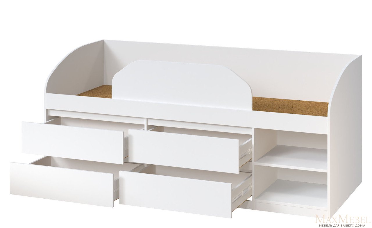 | Головна › Модульні меблі › Мастер-Форм › Брайт › Ліжко "Брайт" з дитячим обмежувачем та ящиками 835x2032x840 мм. . Німфея альба (лівостороння) |