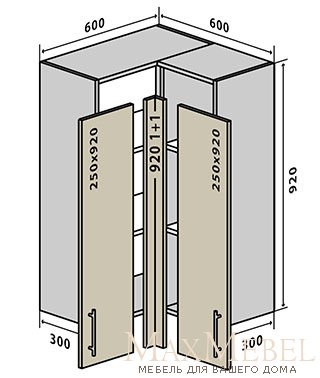 ГоловнаКухніКухні модульні Кухня MoDa мат “Soft Touch”(Vip - Master) МДФ плівкаНавісна Шафа №58 кут (580x920) Мода мат Soft Touch