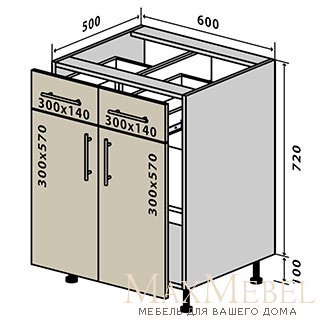 Нижня Тумба №26 двері + шухляди (600x820) Парма