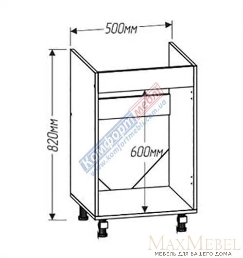 ширина: 500 мм висота: 820 мм глибина: 450 мм матеріал корпусу: ЛДСП, края обклеєні пластиковою кромкою ПВХ 0,45 мм