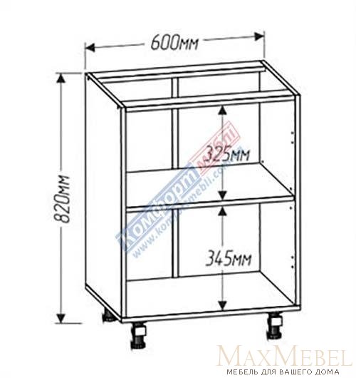 ширина: 600 мм висота: 820 мм глибина: 450 мм матеріал корпусу: ЛДСП, края обклеєні пластиковою кромкою ПВХ 0,45 мм