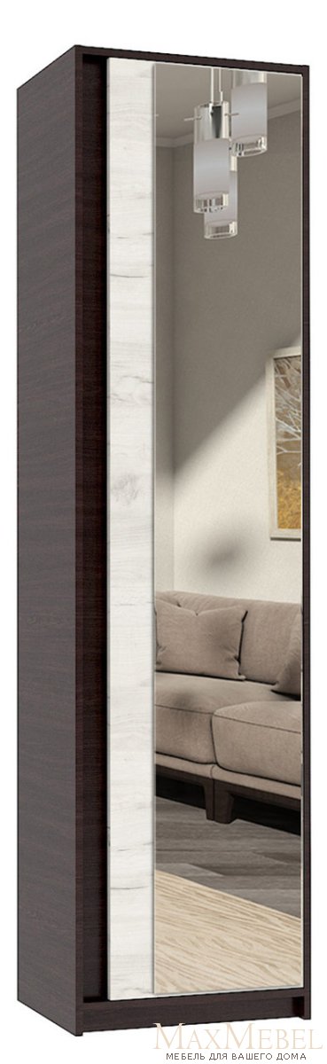 | Головна › Модульні меблі › Мастер-Форм › Брайт › Шафа-пенал з полицями та дзеркалом "Брайт" 520х376х2000 h . Венге магія / Дуб крафт білий |