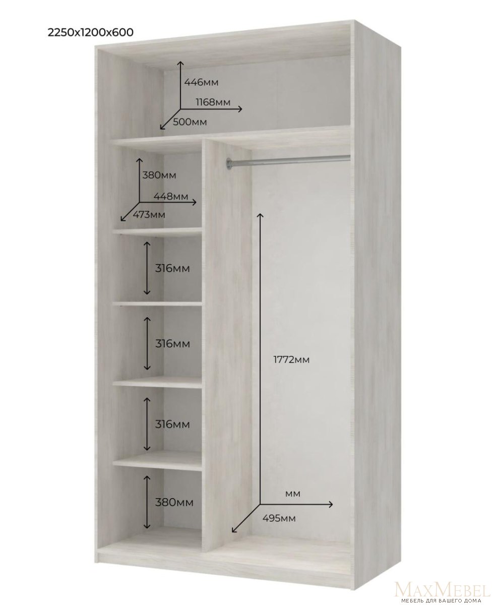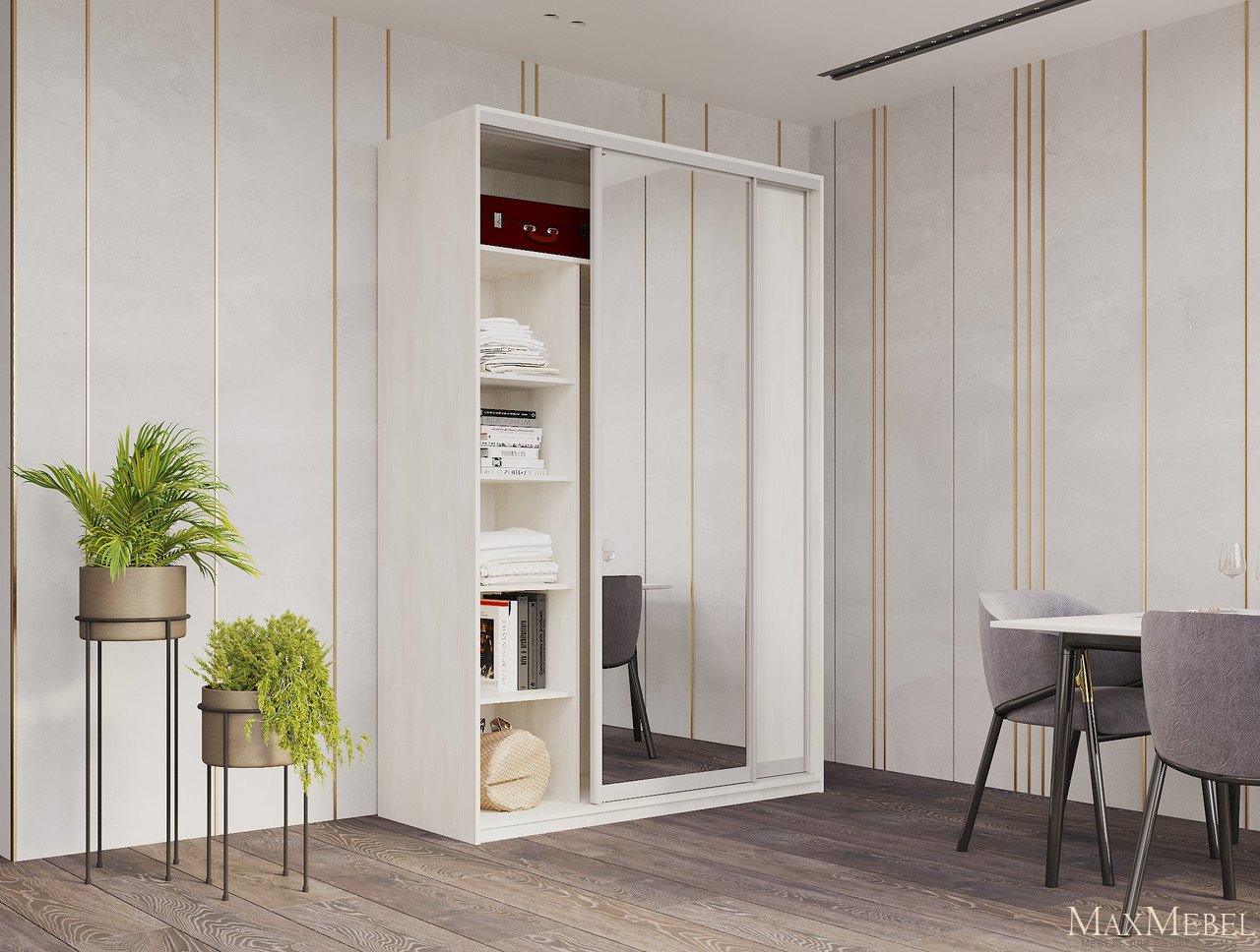 Головна › Шафи купе › Шафи купе двудверні: 1200 мм › Шафа купе Сіті Лайт Біле дерево 1 ДСП / 1 Дзеркало 120х60х225 |