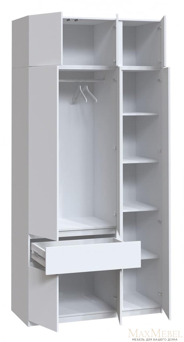 Антресоль: Так Висота шафи, мм: 2400 Глибина шафи, мм: 520 Кількість зовнішніх висувних ящиків, шт: 1 Кількість дзеркал, шт: 1 Кількість стулок (дверей), шт: 8 Наявність дзеркала: на зовнішній стороні фасаду Стан: Новий Тип напрямних для висувних ящиків: Телескопічні (кулькові) Фасади: ламінована ДСП Ширина шафи, мм: 1221 > Штанга для одягу, шт: 1 Вага, кг: 128 Корпус (каркас): ламінована ДСП Матеріал корпусу: Ламінована ДСП Призначення: Для дому Тип меблів: шафа > Колір: Білий