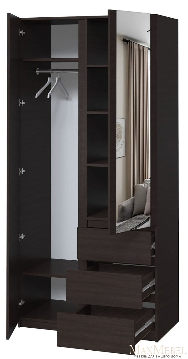 | Головна › Модульні меблі › Мастер-Форм › Брайт › Шафа з дзеркалом "Брайт" 1000х520х2000 h . Венге магія (Телескопічні напрямні) |